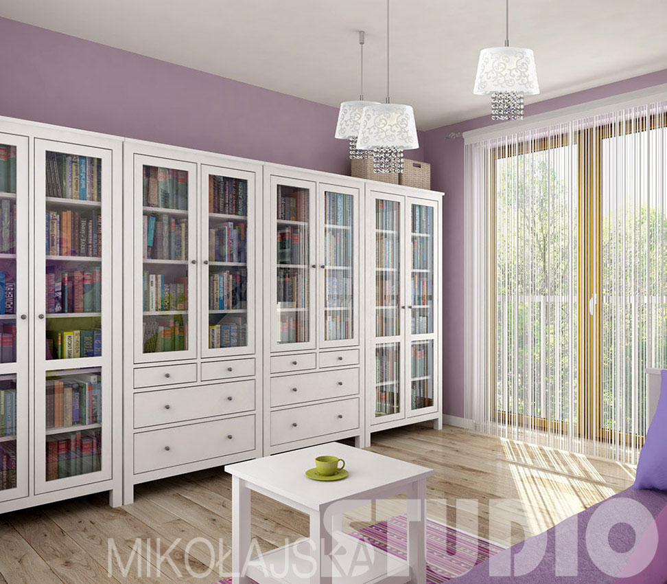Projekt pokoju dla dziewczynki pokazywałam 6-cio latce i 16-to latce. Obu bardzo się podobał i chciałyby w takim wnętrzu mieszkać. Pokoik jest łatwy w urządzeniu. Wszystkie meble oprócz szafy wnękowej są z IKEA – seria Hemnes. Jedynie sekretarzyk pełniący rolę biureczka i siedzisko/schowek są z serii Alve. Na ścianie położona jest taniutka, ale bardzo ładna fototapeta Otaksa firmy Komar. Ona decyduje o klimacie i kolorystyce wnętrza. Odpowiednio dobrane lampy, firanka i dodatki podkreślają styl całości.