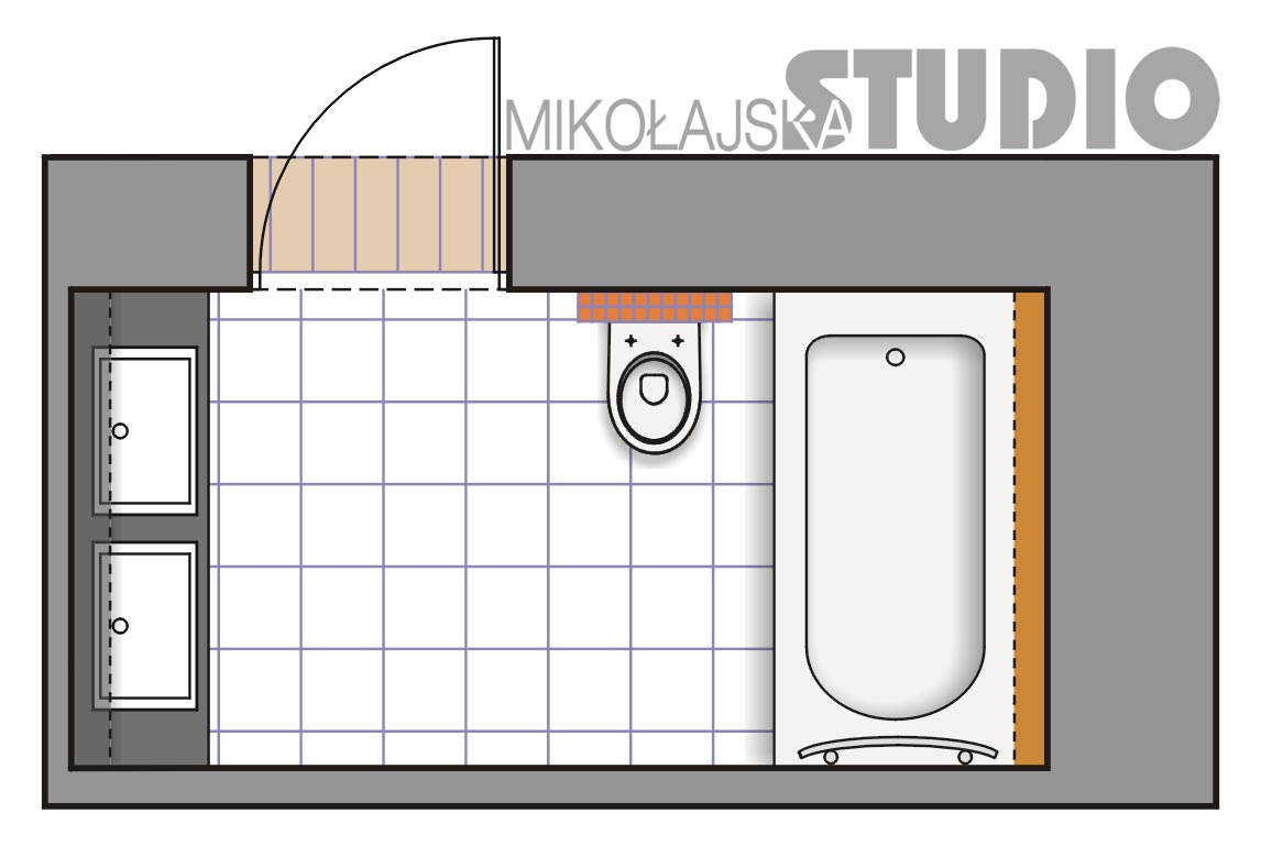 Projektowana łazienka znajduje się w mieszkaniu w okołowojennej kamienicy. Oprócz niej jest jeszcze toaleta z prysznicem, więc tu zaprojektowałam tylko wannę.